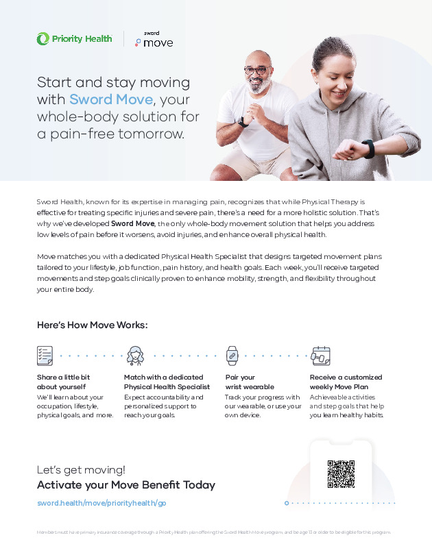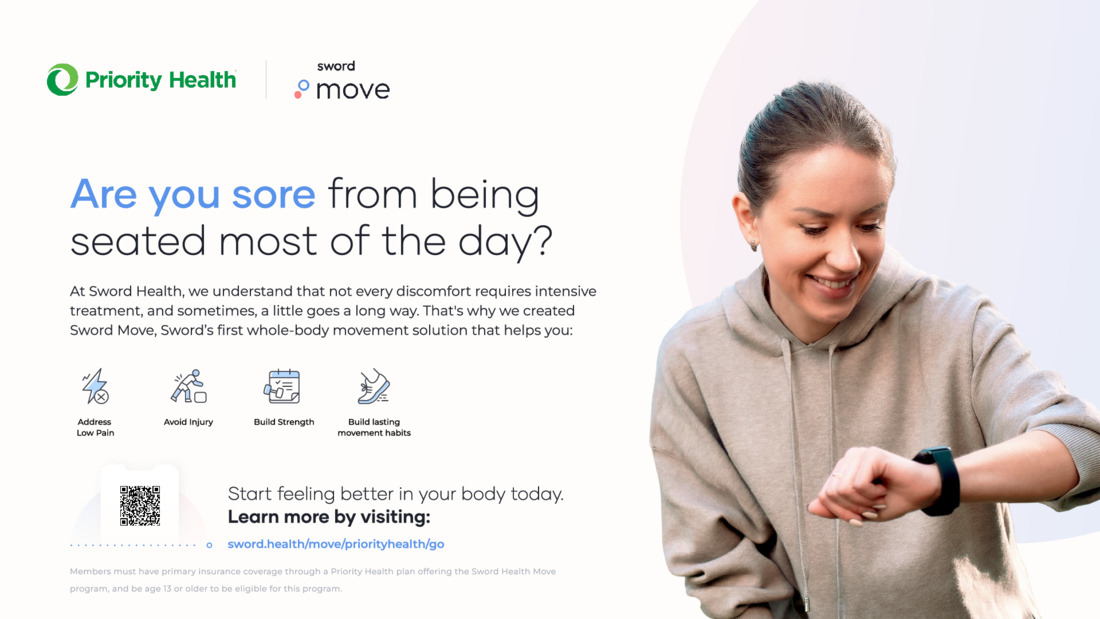 Sword Health is the first company to predict, prevent, and treat pain through individualized treatment, freeing them from pain, while reducing your spend on surgical care and other costly interventions. This toolkit includes materials for Sword’s Thrive, Bloom, and Move programs.