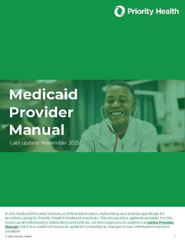 Priority Health Medicaid Provider Manual